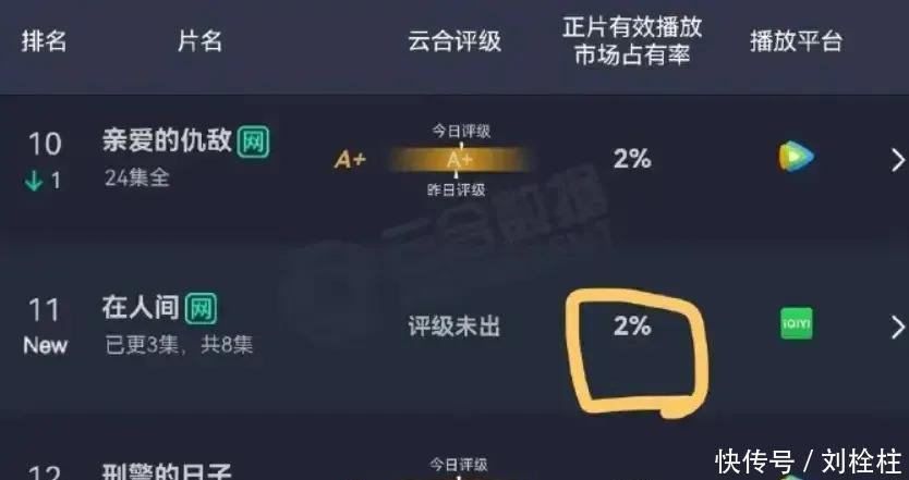 更堪忧的是新剧《在东谈主间》刚开播云合占比仅约2%,以致在暑期档中垫底。